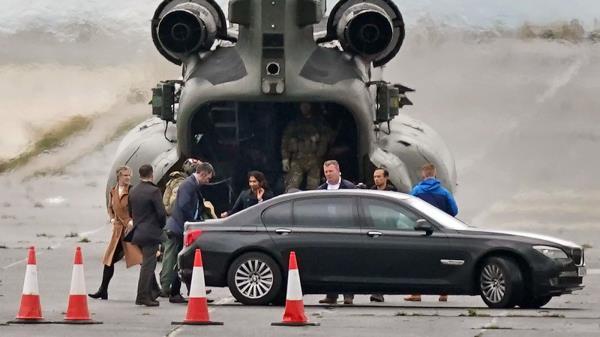 内政大臣在会见多佛尔海岸警卫队队员并乘坐支奴干飞机前往曼斯顿基地时,回避了媒体的提问。