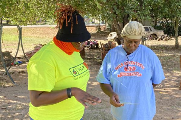 10月一个温暖的下午,哈德威克正在乔治亚州西南部的道森镇工作,他是新乔治亚州项目行动基金的有偿拉票人。她试图激励这个位于亚特兰大以南135英里(215公里)的小镇的人们在周二或之前投票。