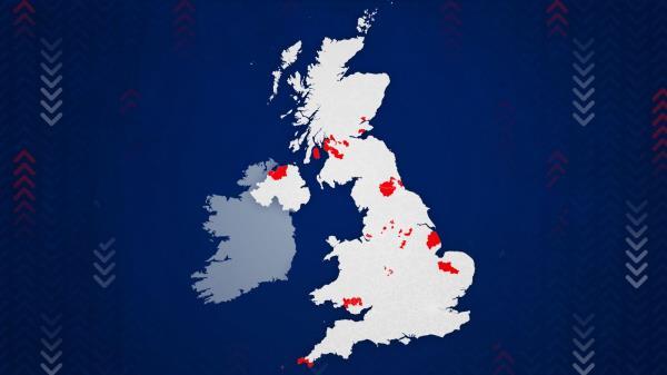 伯明翰和利物浦的选区在该指数的前列占据重要位置。在受影响最严重的20个地区中,只有3个在威尔士,其余17个在英格兰——主要在东北部。