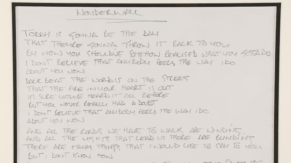 诺埃尔·加拉格尔手写的Wonderwall歌词在拍卖会上拍出估价的10倍