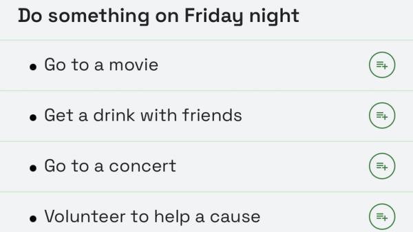 这次的清单建议去看一场电影,去一家新鲜的餐厅,甚至志愿帮助一个好的事业。