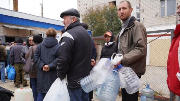 没有电,到处都在排队取水。人们拿着空塑料瓶耐心地排队等候。