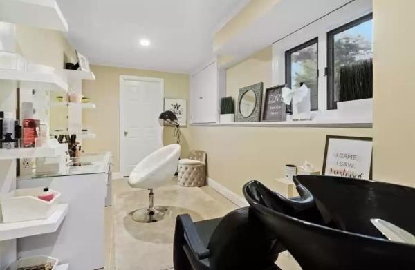 这里有一间办公室和一间家庭健身房,最底层还有一间美发化妆室。马丁内斯和他的妻子卡罗莱纳·克鲁兹·马丁内斯(Carolina Cruz Martinez)都在那里花了大量时间,分别在TBS和ESPN Deportes上为他们在MLB的镜头角色润色。