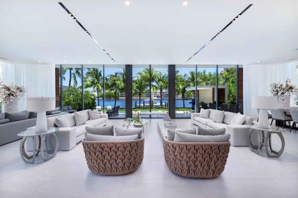 这座8897平方英尺的住宅位于有门禁的埃里森岛(Allison Island)上,坐落在75英尺(约合15米)长的水边,与比斯坎湾(Biscayne Bay)相连。