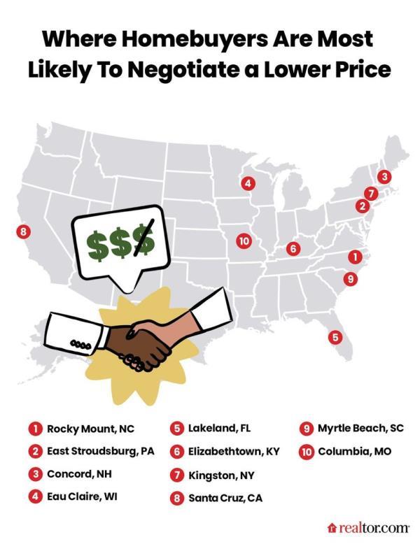 但也有一些地铁给家庭购房者带来了一些希望——在这些地方,他们可能能够提交低于卖方要价的低报价。在这些城市里,精明的购房者会明智地出价低于要价,坚持进行房屋检查等应急措施,甚至就交易的其他部分进行谈判,这样可能会省下一大笔钱。