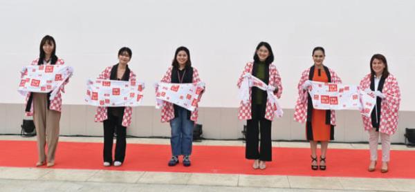 优衣库Nuvali开业当天(从左至右)优衣库门店运营负责人金松海,优衣库区域经理Kristine Belarmino,优衣库门店经理Rovie Ann Antipolo,优衣库首席运营官Geraldine Sia, Sta。罗莎市市长Arlene Arcillas,阿亚拉地产主管和马尼拉大都会和南吕宋地产高级地产开发主管Cris Zuluaga