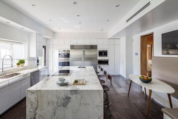 这个时髦的地方有弗兰克·劳埃德·赖特的美学——这在迈阿密地区是罕见的——拥有30英尺高的天花板,天然木梁,石头和玻璃墙。