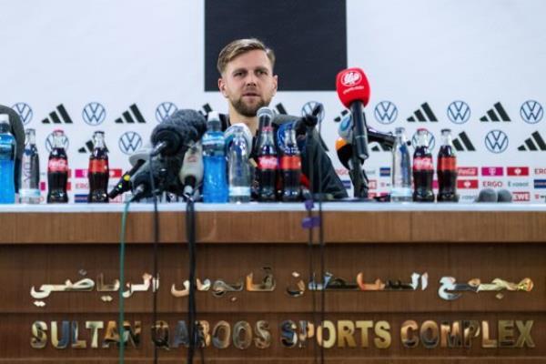 11月15日,在阿曼马斯喀特举行的德国队赛前新闻发布会上,桌上摆放着可口可乐瓶。图片来源:Markus Gilliar/GES Sportfoto/Getty Images