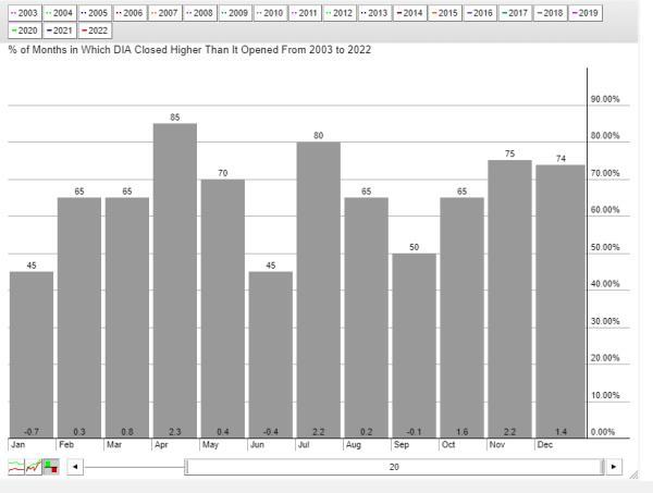 希望为2023年股市开局疲弱做准备的股票交易员可能会考虑在2022年底做空DIA。