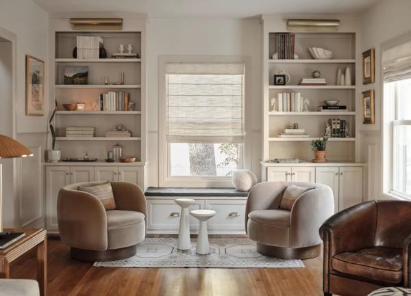 曲线优美的家具几年来一直是设计界的顶级趋势,这些迷人的扶手椅看起来清新而现代,尤其是与更传统的家具搭配时,比如椅背的内置架子。