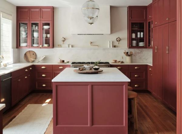 酒红色厨房的另一个好处是?“这种颜色能刺激食欲,在全白色的厨房中非常受欢迎。”