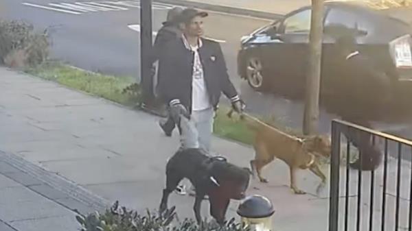 警方现在发布了一段短视频,他们认为视频显示该男子在袭击当天带着两条狗散步。