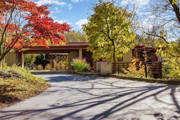 价格:74.9万美元(约合人民币614万元)可爱又多叶:我们非常喜欢这栋房子的标志性胡桃木架子,它被描述为“上世纪中叶的乌森尼亚式住宅”。它是由莱特的学生泰德·范·福森于1969年建造的。