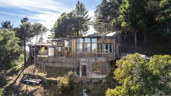 价格:2,700,000美元:这座不同寻常的住宅是由建筑师丹尼尔·利伯曼(Daniel Liebermann)建造的,他与赖特一起设计了马林市政中心(Marin Civic Center),然后走了自己的路,设计了像这样的新月形可持续住宅。