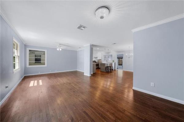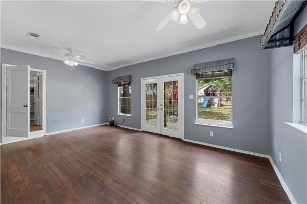 另外,装修的好处是把一间平淡无奇的后屋改造成了一间配有法式双开门的家庭娱乐室。他们还用与房子其他部分的地板相匹配的木质地毯替换了成堆的地毯。