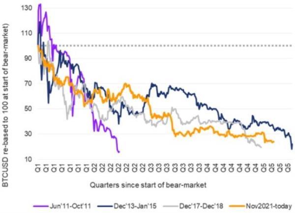 比特币自2021年10月的峰值以来已经下跌了78%。2010年和2011年下降92%,2014年和2015年下降85%,2018年下降83%。这些崩溃都没有妨碍它的功能或相关技术的快速采用。事实上,加密技术在随后的每个周期中都在进步,它的采用率是所有技术中最快的。