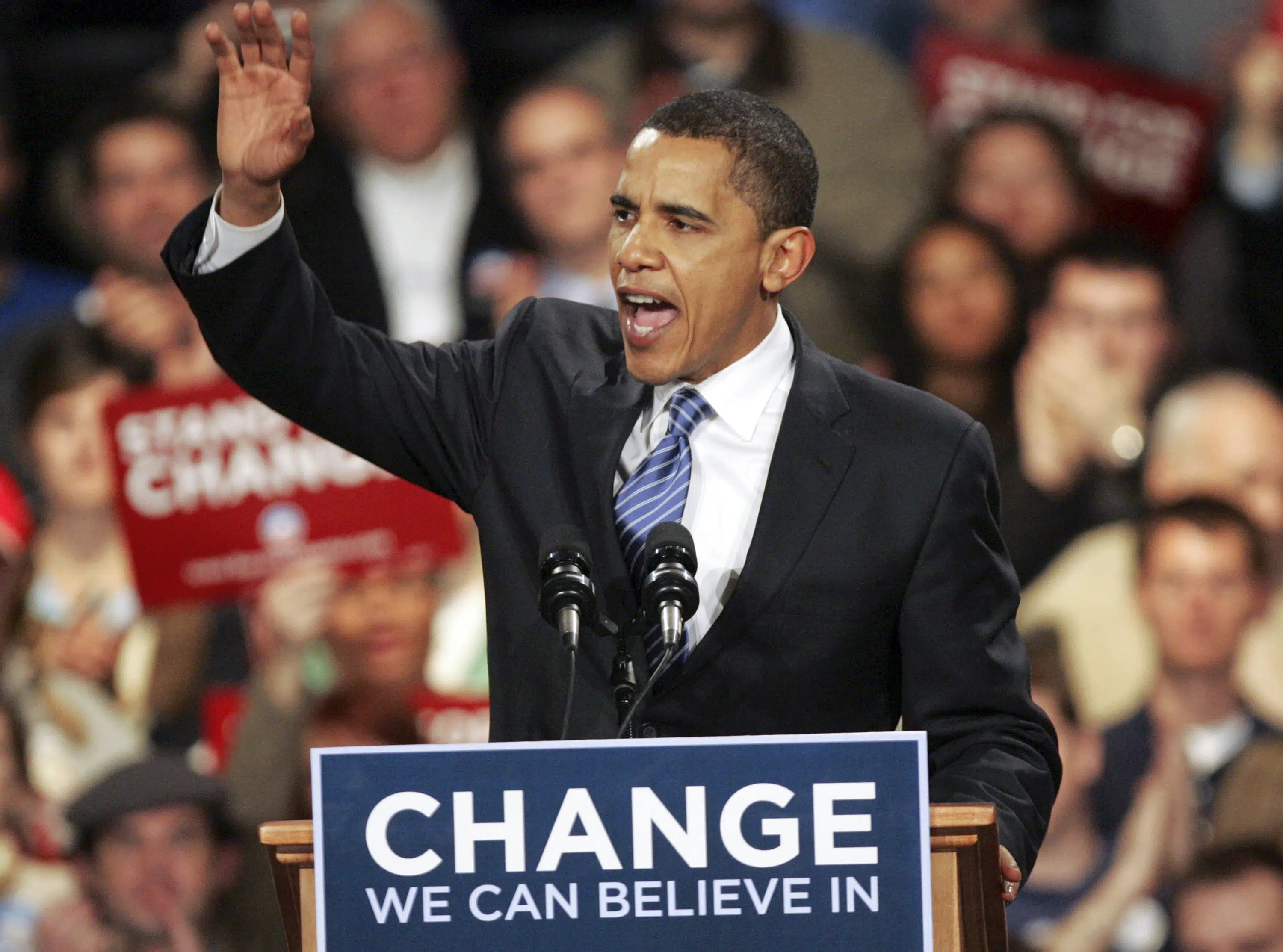 爱荷华州得梅因(美联社)——2008年,当这位年轻的伊利诺斯州参议员暗示未来成就的可能性不大时,得梅因的Hy-Vee大厅舞厅爆发出欢呼声:“我们变革的时代已经到来!”