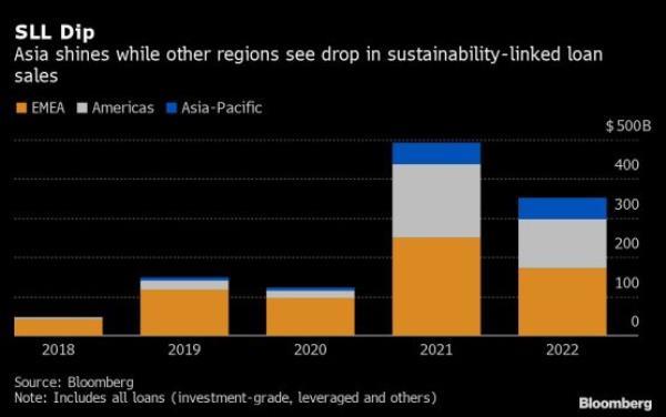 近年来,与可持续发展相关的贷款呈指数增长,今年在全球范围内是艰难的一年。全球销售额从2021年创纪录的5060亿美元降至3620亿美元。可持续惠誉(Sustainable Fitch) ESG研究亚太区主管Nneka Chike-Obi表示,由于利率上升、通货膨胀和美元走强,企业负债减少。