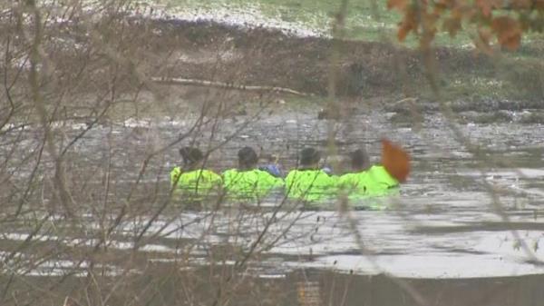 今天早上,警察在齐胸深的湖水中涉水,不过他们还没有确认是否还有人失踪。