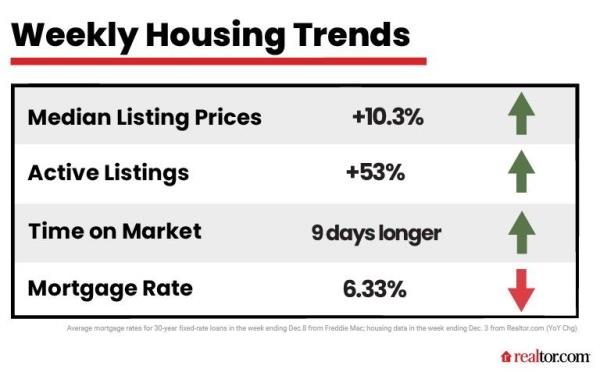 Realtor.com?首席经济学家丹妮尔·黑尔在她的每周分析中解释说:“感恩节假期后一周的住房数据显示,最近抵押贷款利率的下降可能已经产生了影响。”