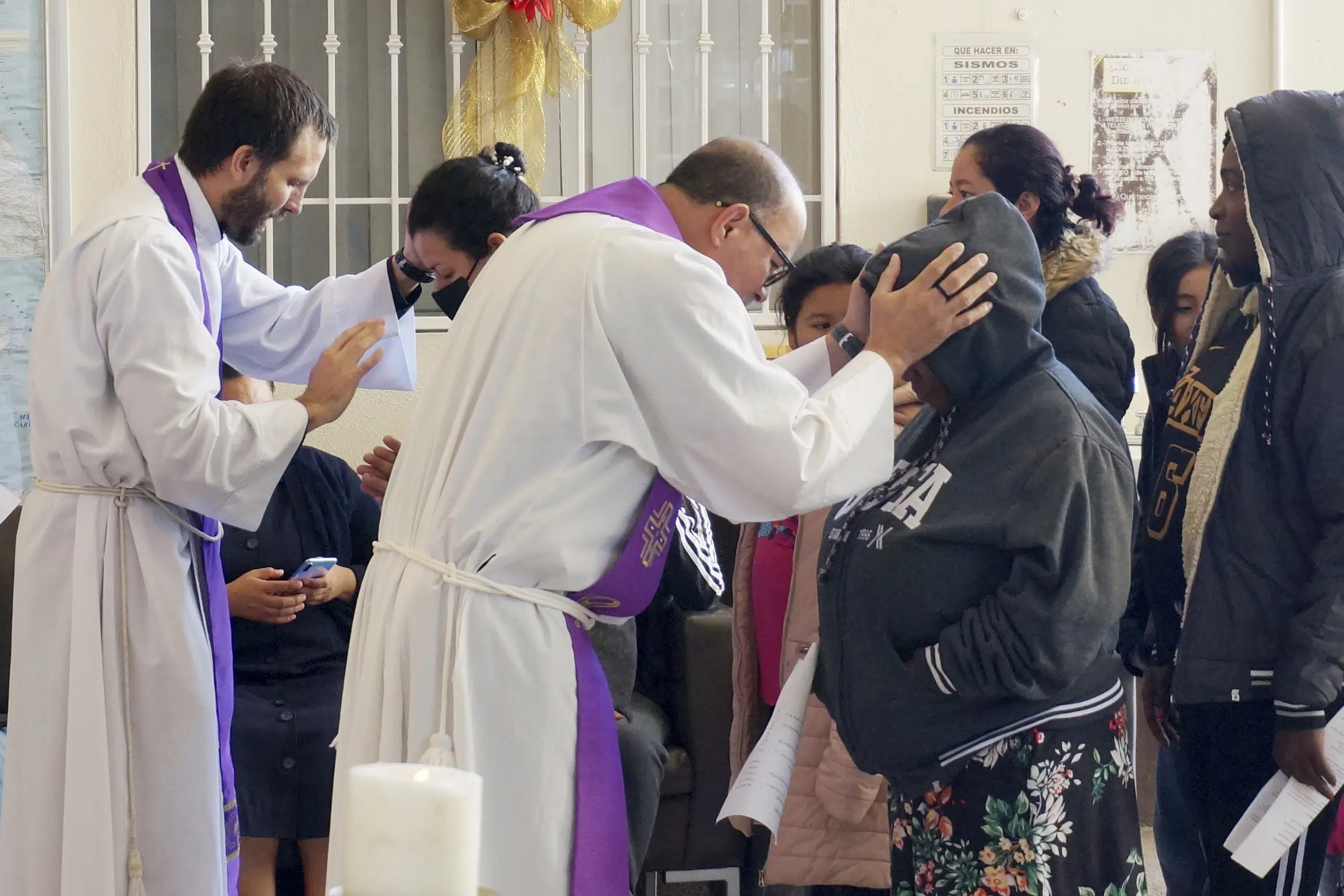 雷诺萨,墨西哥(美联社)——在德克萨斯州格兰德河对岸的边境城市,两长队的移民在移民之家避难所等待着来访的天主教牧师的祝福,他们正在主持弥撒。
