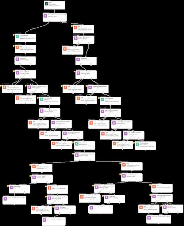 在本例中,自动化用于将用户添加到欢迎系列,检查他们是否已经完成发送给营销部门,将他们添加到列表中,然后在他们创建帐户后向他们发送电子邮件。