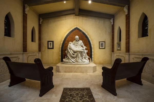 该物业最令人惊叹的特色之一是现场的小教堂,内有米开朗基罗(Michelangelo)在罗马梵蒂冈的雕塑《圣母玛利亚》(La Pieta)的全尺寸复制品。雕像可以单独购买。