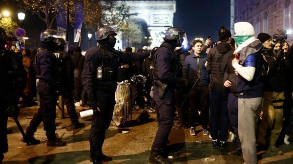 法国和摩洛哥球迷在比赛结束后也在巴黎发生了冲突。身着防暴装备的警察被叫去驱散人群。