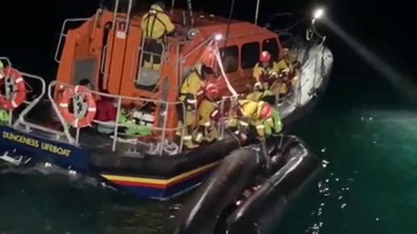 一艘载有50人的小型移民船在肯特郡邓杰内斯附近的英吉利海峡倾覆,造成至少4人死亡。