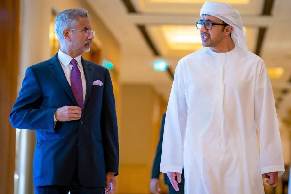 周一开会期间阿联酋外长谢赫阿卜杜拉·本·扎耶德·阿勒纳哈扬采取行动,和来访的印度外交部长Subrahmanyam Jaishankar,双方还讨论了加强各方面的合作,特别强调健康的领域,技术、数字化、经济和贸易在今年签署的两国全面经济伙伴关系。