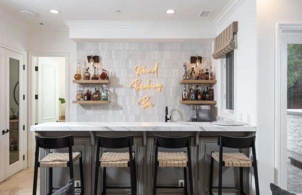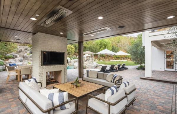 后院客厅设有烧烤,壁炉和披萨烤箱。附近有一个高尔夫球果岭、击球笼、凉亭、凸起的花园床,以及用来养山羊或鸡的封闭空间。