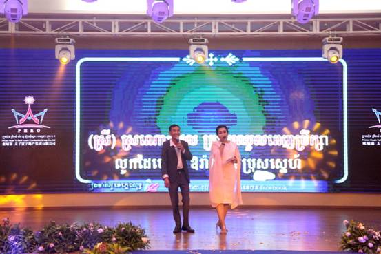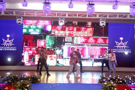 伴随着主持人激情洋溢的开场白,集团管理团队用美轮美奂的柬埔寨祝福舞及“暹粒王国故事”表演拉开了整个晚会的序幕,为新的一年共同祈福;随后,刚柔并济的太极扇表演和缤纷的中柬时装秀也赢得了现场的阵阵热烈掌声。