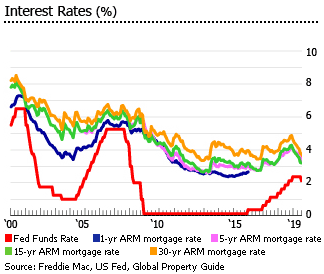 2019年8月,30年期固定利率抵押贷款(FRM)的平均利率为3.62%,低于2018年8月的4.55%。15年FRM的平均利率在2019年7月为3.2%,低于去年的4.01%。5年期可变利率抵押贷款(ARM)的平均利率从一年前的3.87%降至2019年8月的3.36%。