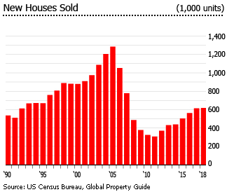 根据美国人口普查局的数据,2019年7月在美国售出的新房的平均售价同比下降了1.6%,至388,000美元。实际上,同期新房销售价格中位数下降了4.8%,至312,800美元。