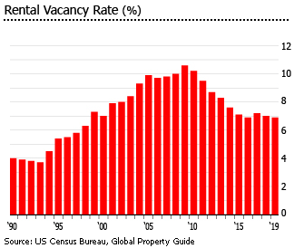 根据美国人口普查局的数据,2019年第二季度全国租金空置率为6.8%,低于上一季度的7%,但与去年同期持平。