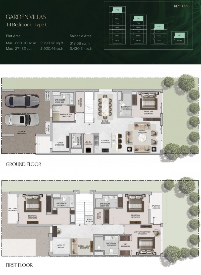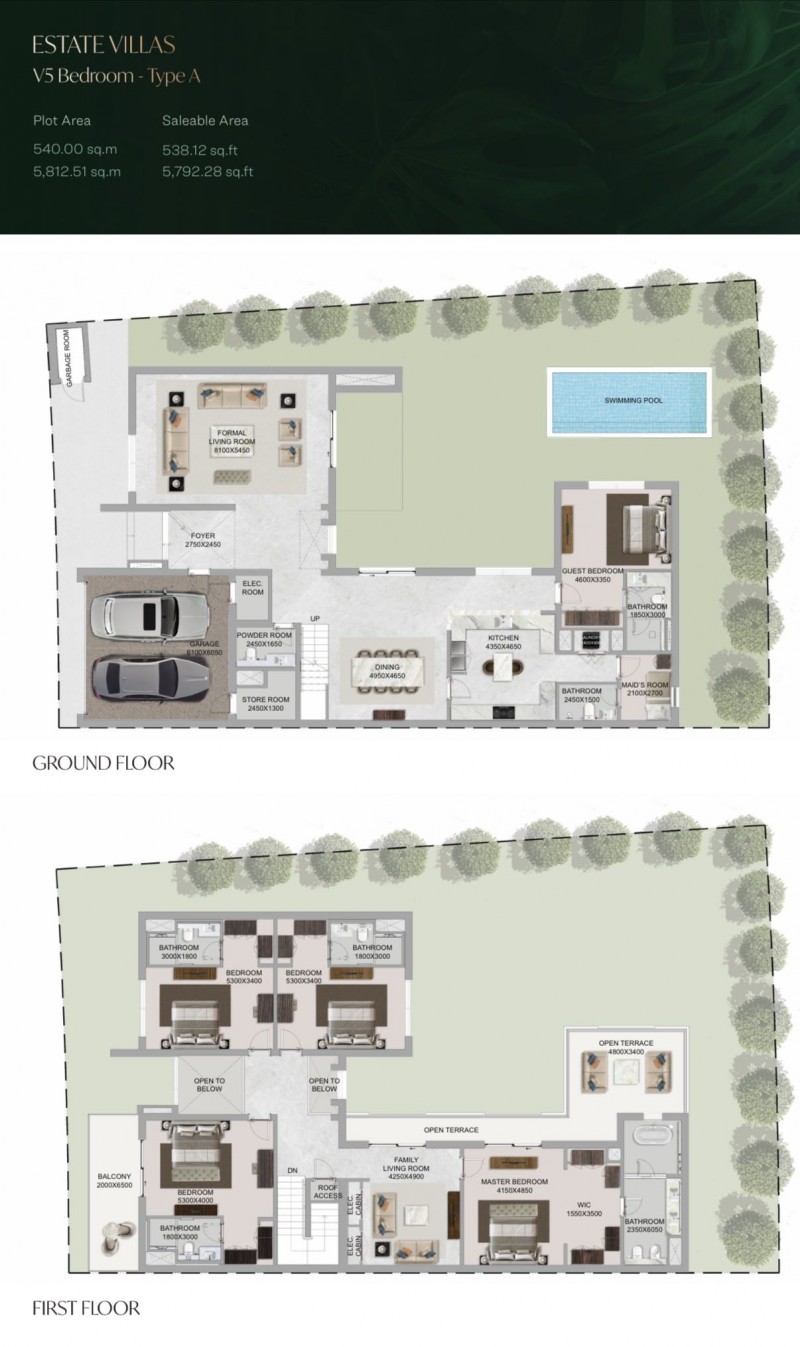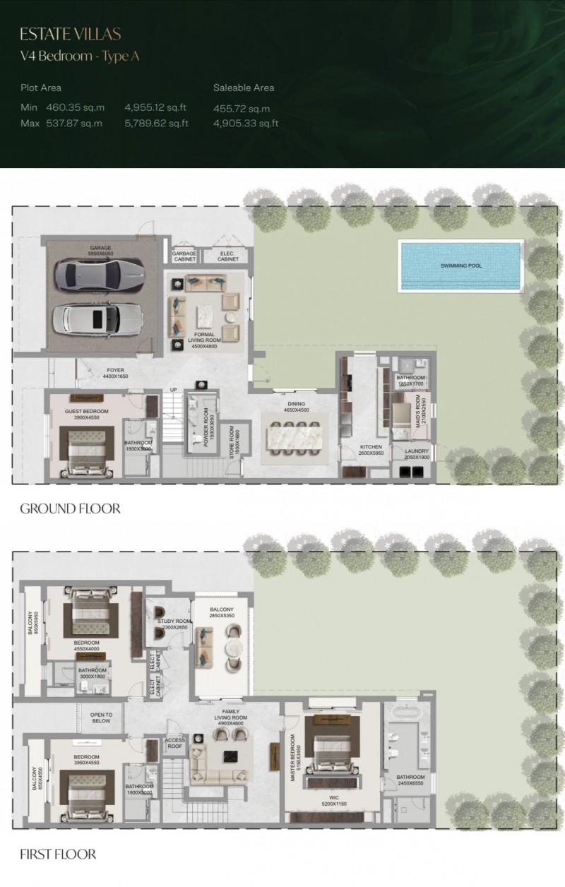 第一期开盘包含4房联排别墅, 5房双拼别墅,