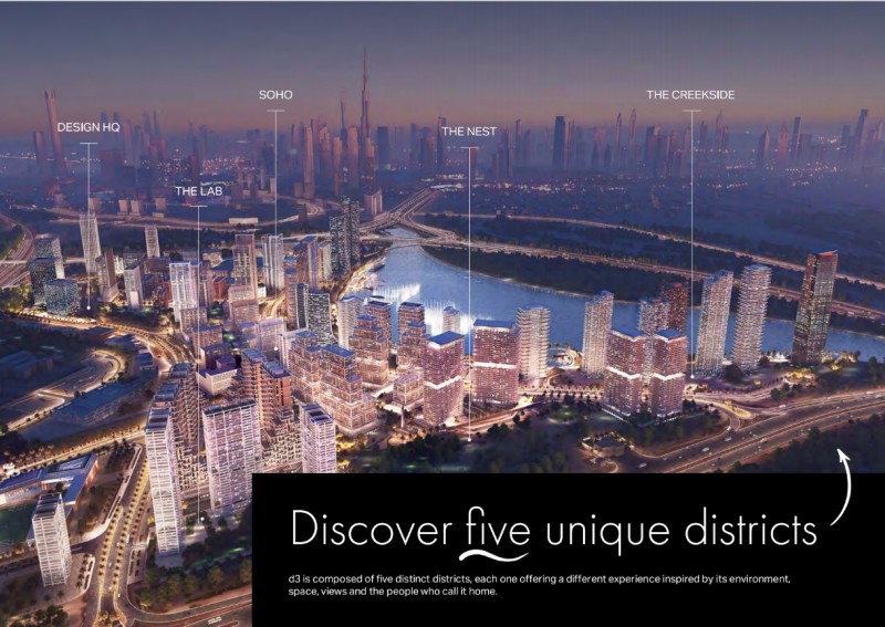 选址迪拜市中心附近,汇集居住、办公与文化空间,坐拥滨水景致、步行街区及定制化体验,旨在激发创意灵感,联结全球创意社群。