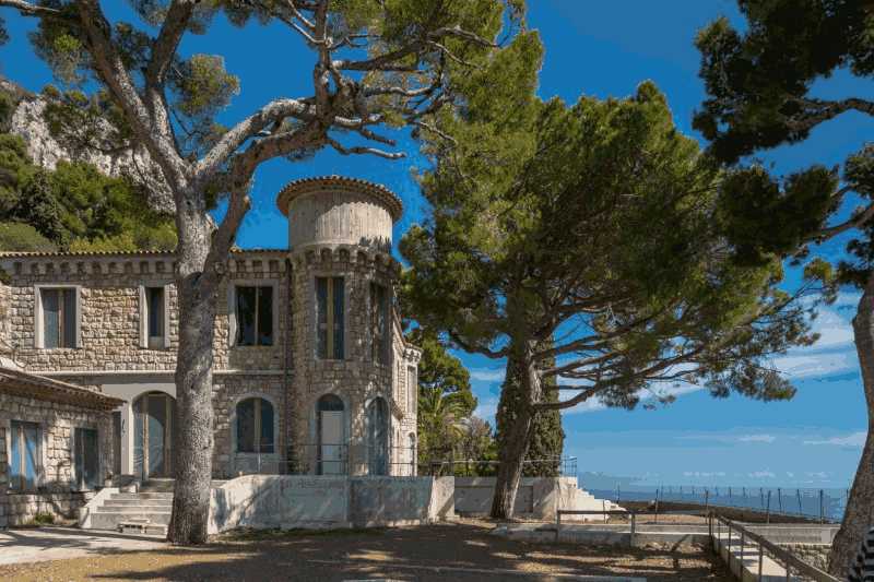 坐拥半面山坡:占地面积11 000平方米,在寸土寸金的蔚蓝海岸,拥有如此大面积土地的豪宅非常稀有。拥有橄榄树林,葡萄园,专业网球场,和室外游泳池。与蔚蓝海岸最贵的曾属于比利时国王的别墅Villa Leopolda 比邻而居。