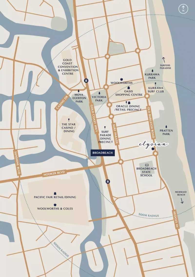 Elysian项目位于澳大利亚黄金海岸的Broadbeach区域黄金地段,‘邻近市中心以及享誉世界的冲浪者天堂(The Surfers Paradise), 项目周边大型基建数不胜数,能够满足您在日常生活中的各种需求。而项目优于冲浪者天堂的地方在于,这边没有太多的游客,所以真正做到闹中取静,独享乐土。