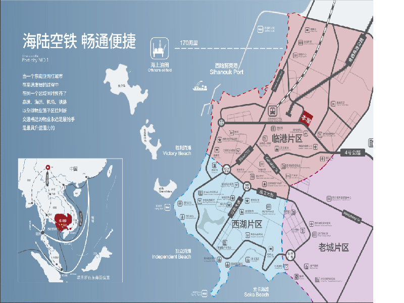 0距离毗邻金边-西港物流大动脉——4号公路;