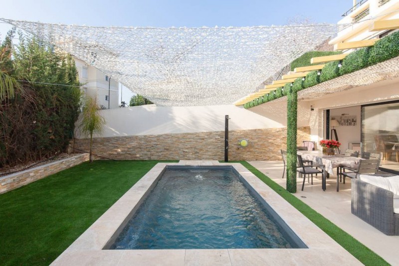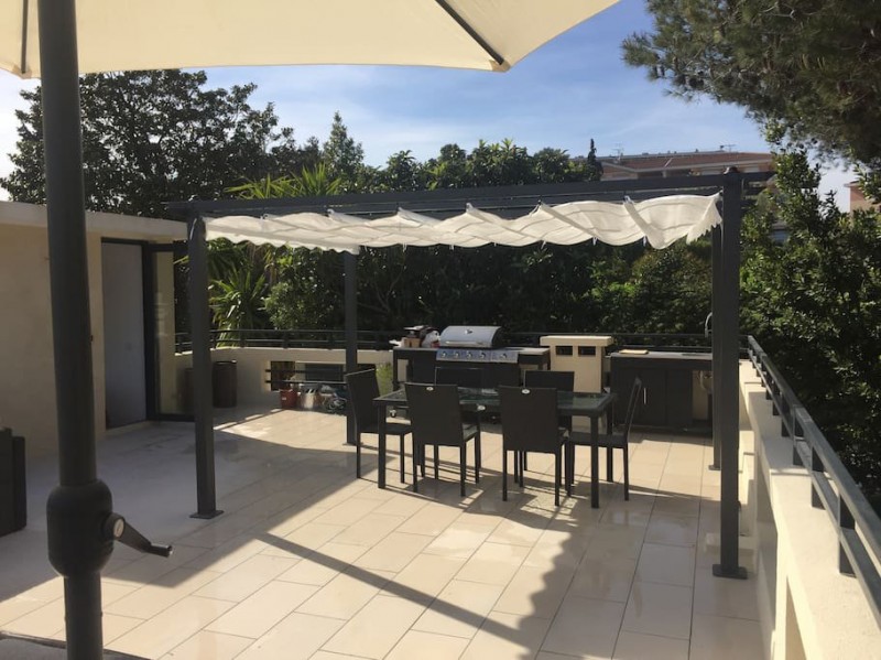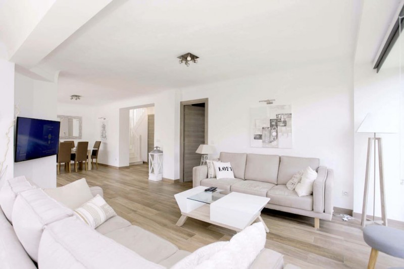 位于法国电影节所在地戛纳,近市中心, 全新装修过的两层洋楼, 海景, 带私家游泳池。
