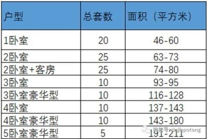 从下面制作的图表可以看出,项目整体户型偏大,有适合刚需型买家们的户型,同时也照顾改善型、预算更宽裕的买家
