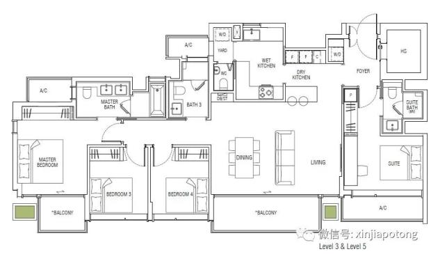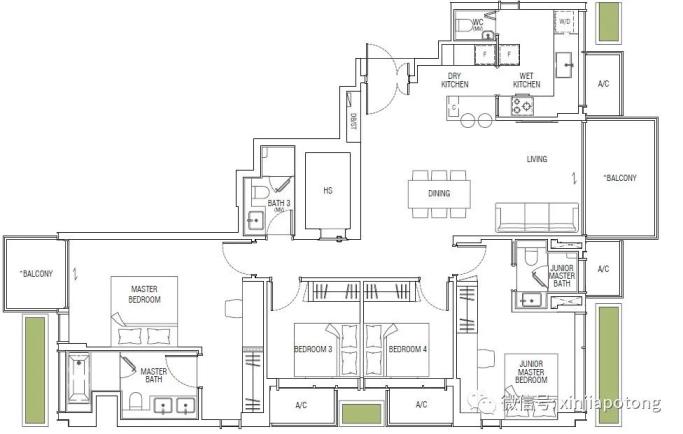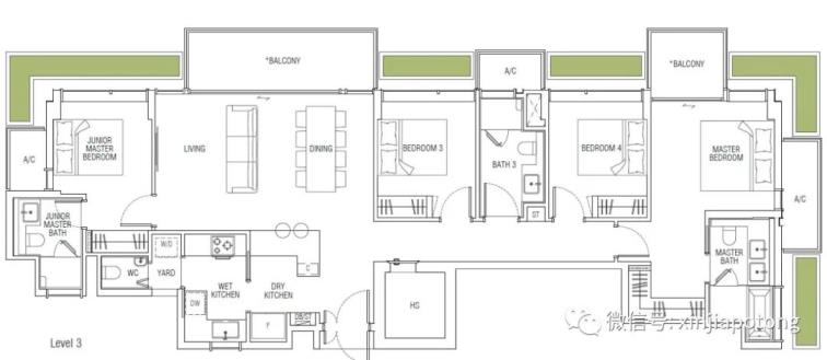 (4) 有3栋每层只有4个单位,每一层专属种花槽让住户接近大自然