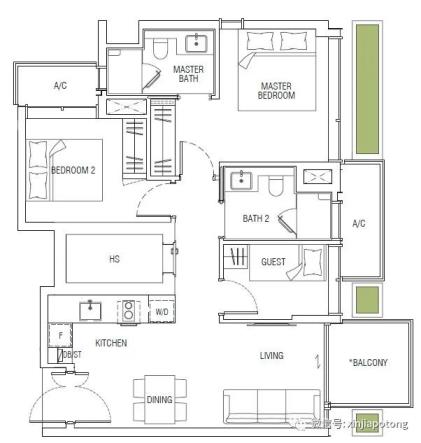大面积户型(参考3卧室-5卧室豪华型),具体可以看后面的户型介绍