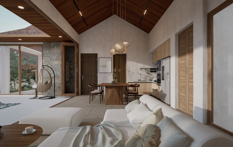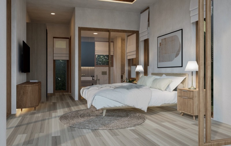 每栋别墅设有两间宽敞的卧室、私人泳池和露台。