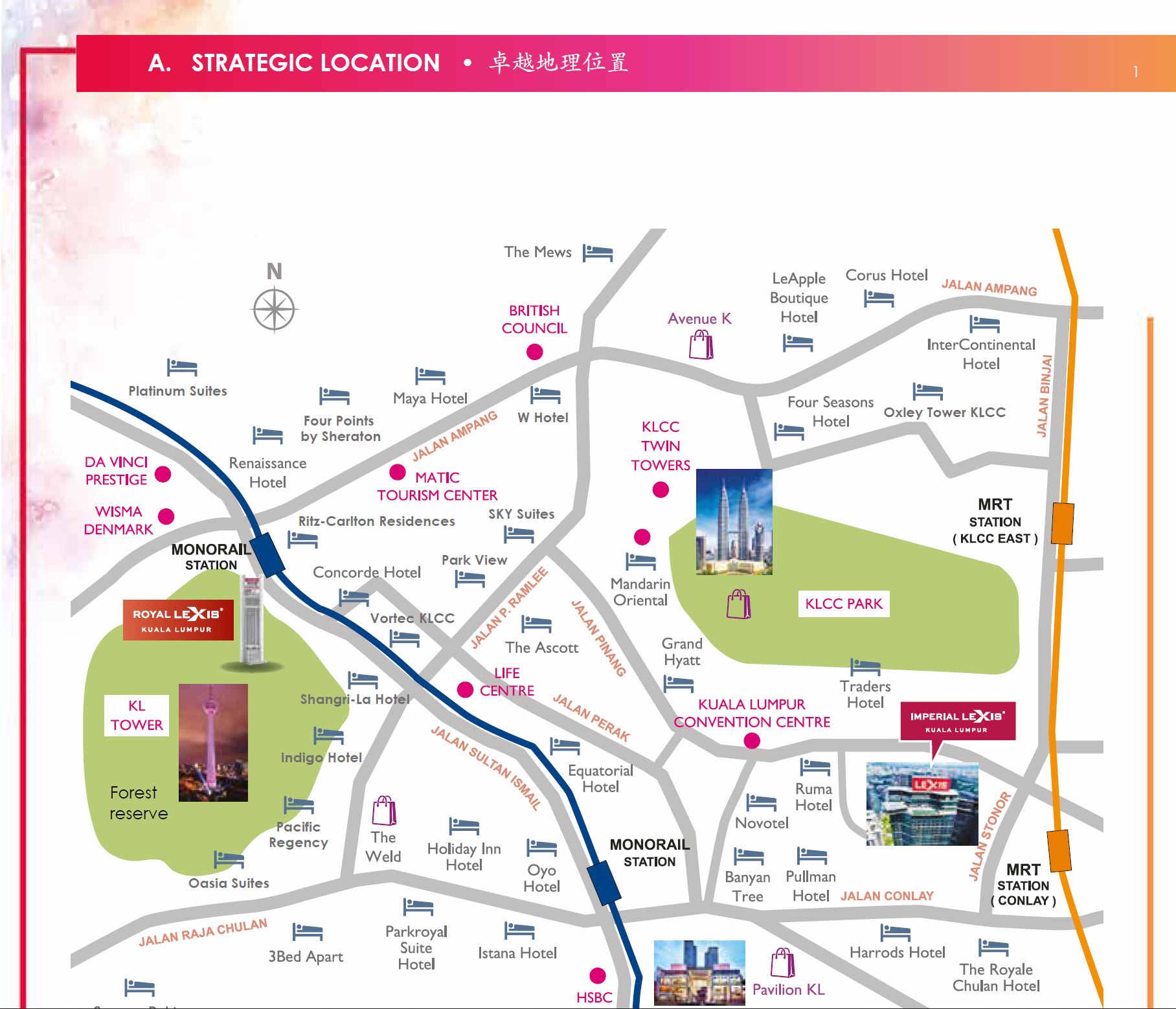√ 楼下即是Bukit Nanas Monorail 单轨列车站,350米到KL Tower吉隆坡塔,1公里到吉隆坡双峰塔