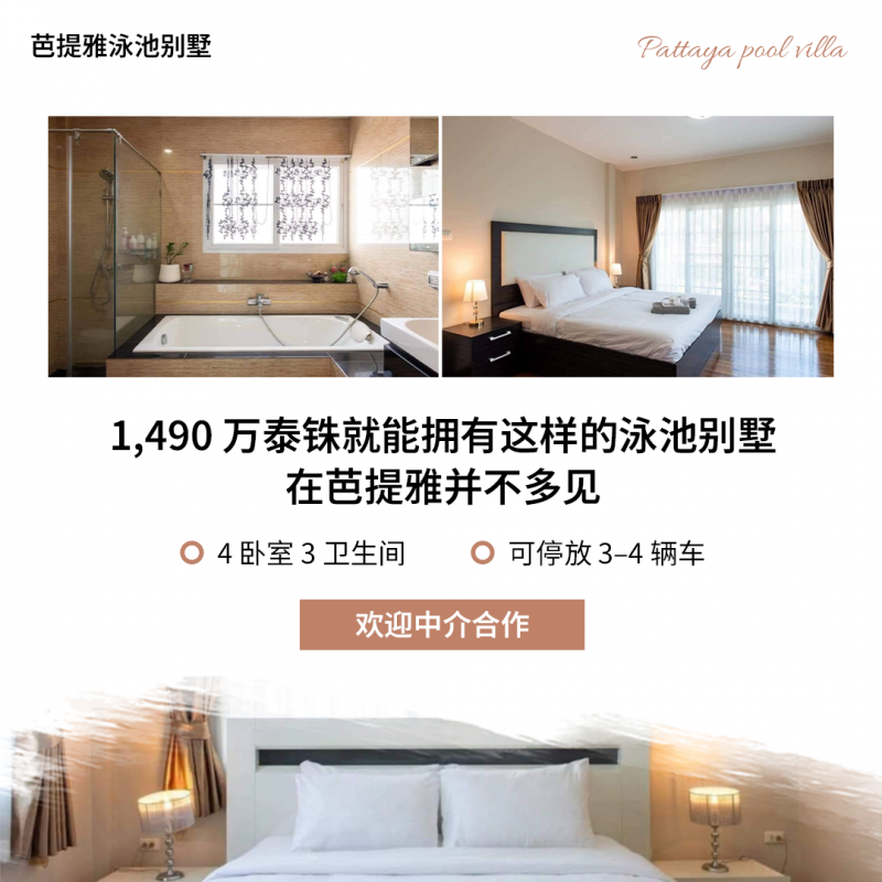 芭提雅泳池别墅,全新翻新,美到无可挑剔!
