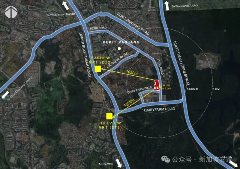 地鐵站步行 經公園連道直達 Downtown Line 的 Hillview(DT3)與Cashew(DT2)地鐵站,搭乘地鐵快速串聯城市核心區域