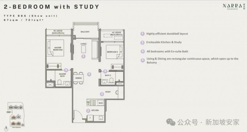 Narra Residences 翠嵐軒 戶型跨度廣,從1房+書房到5房(入戶電梯)覆蓋了單身人士至幾代同堂家庭的需求。