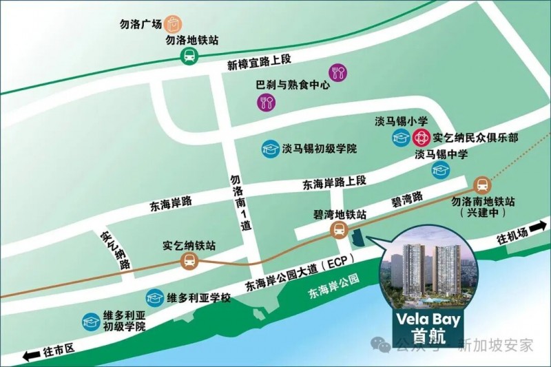 首航(Vela Bay)项目毗邻汤申—东海岸线(TEL)碧湾地铁站,兼具滨海悠闲生活与日常通勤便利。作为全新碧湾区(Bayshore Precinct)内首个高端私宅项目,首航占据先发优势,率先入驻充满活力的东海岸生活圈——东海岸公园、丰富餐饮选择及顶级购物商场近在咫尺,开阔海景视野与繁华现代生活在此完美融合。